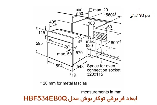 این فر بوش در ابعاد ارتفاع 59.5، عرض 59.4 و عمق 54.8 سانتی متر طراحی شده است. رنگ مشکی این فر جلوه ای خاص را به آشپزخانه شما می بخشد.