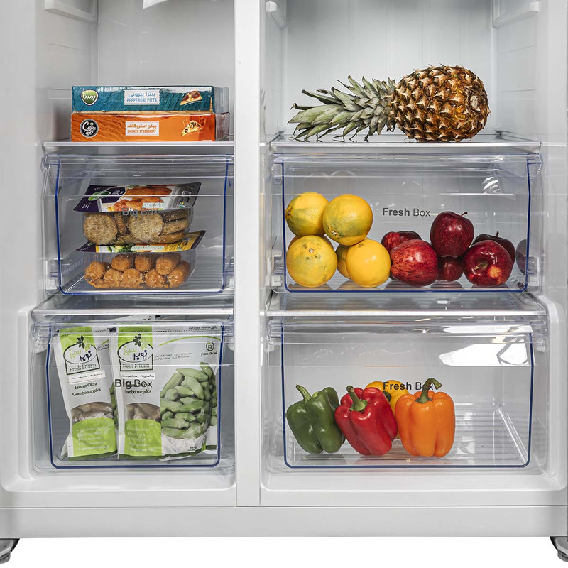 ساید بای ساید 666 ایکس ویژن در رنگ های متنوع تولید شده و با هر نوع چیدمان و دکوراسیونی هماهنگی دارد. این ساید بای ساید به کمپرسور اینورتر کم صدا و کم مصرف مجهز است و کاهش چشمگیری در مصرف انرژی دارد. کمپرسور اینورتر دمای داخلی یخچال را ثابت نگه می دارد تا شرایط مناسب تری برای نگهداری مواد غذایی ایجاد شود. در واقع این نوع کمپرسور با تغییر دمای داخل کابین یخچال، به تدریج سرعت کمپرسور را بالا و پایین می کند تا دمای فضای داخلی حفظ شود.