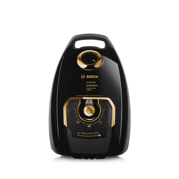 موتور جاروبرقی BGL8GOLDIR بوش بسیار قدرتمند و کم صدا میباشد و توان مصرفی آن 2200 وات است. تکنولوژیIn ‘genius Gold Edition که در این جاروبرقی تعبیه شده، یک تمیزی فوقالعاده را برای شما به ارمغان میآورد. سیستم Power Protect طراحی شده توسط شرکت سازنده با60 درصد قدرت مکش بیشتر باعث میشود تا با جریان هوای عالی، برای عملکرد تمیز کردن، شما جاروکشی پرقدرتی را داشته باشید، همچنین وجود این سیستم باعث افزایش مکش جاروبرقی در زمان نیمه پر بودن کیسه می گردد. سیستم Quattro Power عملکرد بسیار عالی در مکش دارد که باعث نتایج عالی در جارو کردن با مصرف انرژی کمتری میشود. این جاروبرقی دارای موتور کمپرسور HiSpin با تیغه های ایرودینامیک و کاملا کالیبره یکی از کم مصرف ترین جاروهای موجود در بازار است. فیلتر این جاروبرقی هپا (HEPA) میباشد که با ویژگی بالا برای عملکرد بهتر، تمام گرد و غبار را به خوبی به خود جذب می کند و مانع از پخش شدن در محیط میشوند و هوای خروجی 99 درصد بدون ذرات آلرژیزا هستند. همچنین این فیلتر قابل شستشو میباشد. پارویی این مدل جاروبرقی بوش مجهز به Air Bumper است که از ایجاد خطوط سیاه روشن روی مبلمان و از ایجاد خط و خش روی سطوح جلوگیری میکند. حجم کیسه گرد و غبار این مدل جاروبرقی 5 لیتر میباشد که این حجم باعث میشود شما ماه ها از یک کیسه استفاده کنید و در هزینه خرید مداوم کیسه صرفهجویی کنید. پاکت مصرفی این مدل جاروبرقی بوش تیپ G میباشد. وجود 5 عدد کیسه اضافی داخل جعبه دستگاه و برخورداری از شلنگ کنفی از دیگر مزایای این جاروبرقی بشمار میآید. لوازم جانبی همراه جاروبرقی شامل 3 ابزار حرفهای میباشد که شامل برس اثاثیه، برس بسیار بلند درزها و برس سری حرفهای که مجهز به سیستم Silence Sound است که باعث عملکرد بیصدا و آرام میباشد. لوله خرطومی این جاروبرقی بسیار باکیفیت است و به راحتی پاره نمی شود و تغییر شکل نمیدهد. این جاروبرقی بوش با دارا بودن لوله پلاستیکی تلسکوپی خود مناسب هر کاربری میباشد زیرا میتواند به راحتی لوله جاروبرقی را بلند و کوتاه کند. دسته این مدل جاروبرقی ارگونومیک میباشد که باعث سهولت در استفاده از آن میشود.